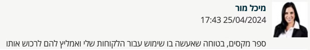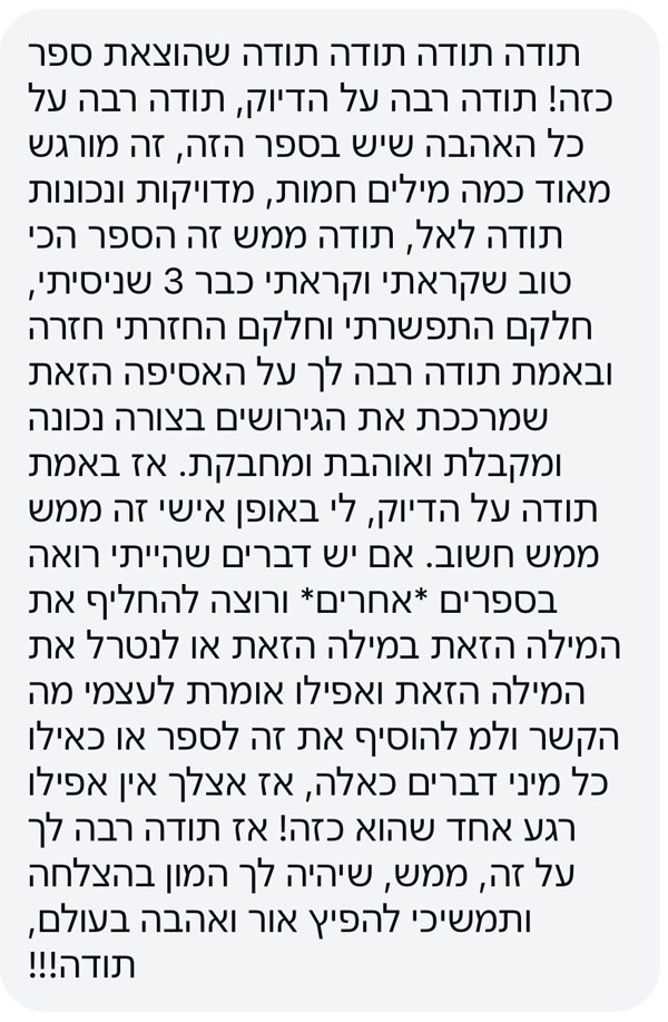״ספר מקסים, בטוחה שאעשה בו שימוש עבור הלקוחות שלי ואמליץ להם לרכוש אותו״